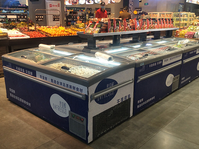 盒馬生鮮生活超市風(fēng)幕柜案例